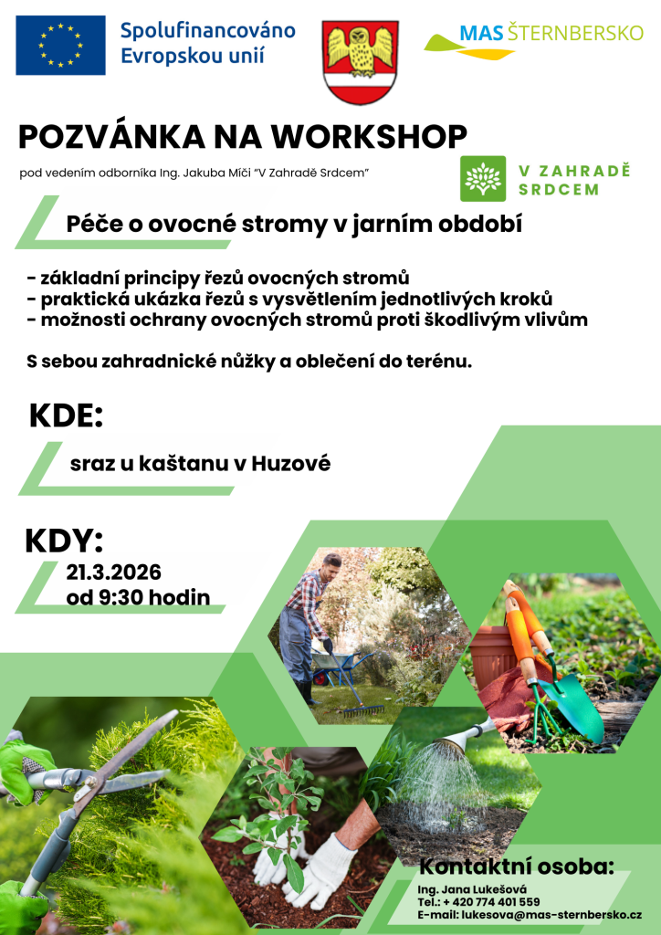 Zveme vás na workshop s Ing. Jakubem Míčou, který se zaměří na péči o ovocné stromy v jarním období. Workshop proběhne 21. března 2026 od 9:30 hodin, sraz bude „U kaštanu“ v Huzové. Akce se uskuteční v ovocném stromořadí na Kněžpolské. Zúčastníte se praktické ukázky řezů a dozvíte se základní principy, jak správně provádět řezy ovocných stromů. Nezapomeňte si vzít zahradnické nůžky a vhodné oblečení do terénu.