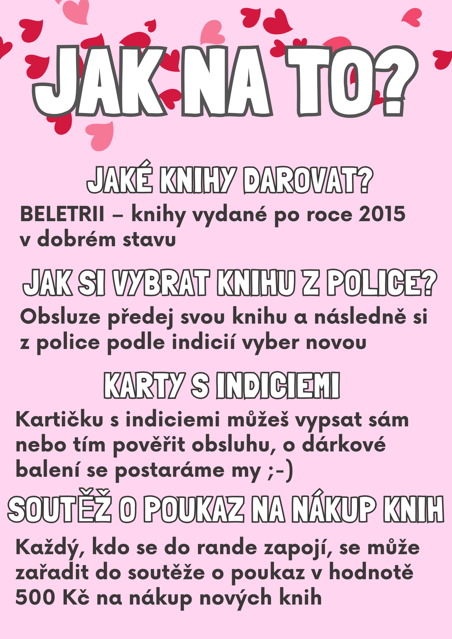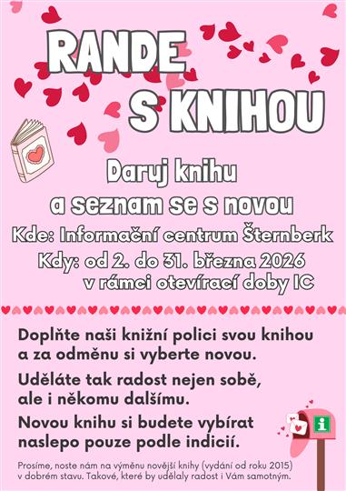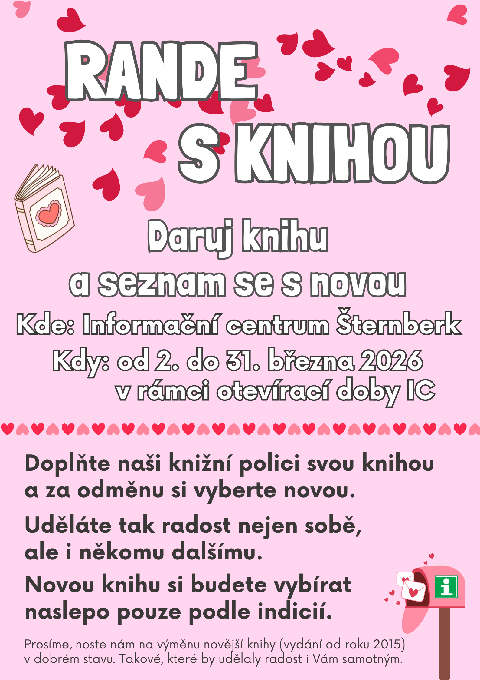 Infocentrum ve Šternberku připravilo akci „Rande s knihou“ – na rande můžete vyrazit od 2. do 31. března 2026 ve všední dny vždy od 8 do 16 hodin.